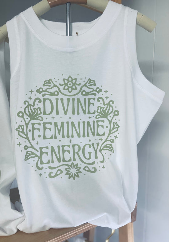 "Divine Feminine Energy." Inspired by the strength and grace of feminine energy, this tee combines style and comfort. Perfect for any occasion, let your femininity shine with every wear.