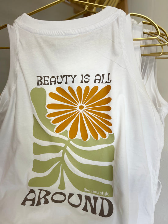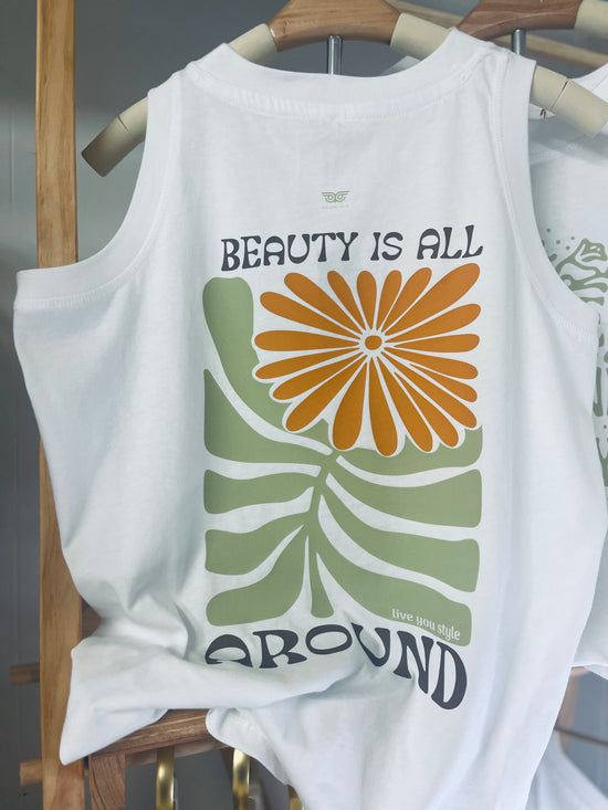 Inspired by nature, with vibrant orange and green. Our sleeveless, 100% cotton tees are comfortable and fresh. Discover the style and let nature's colors brighten your day